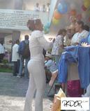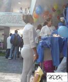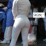 Deleitarse, no se verá su cara de poker, pero si la fuerza de su imagen, una rubia espectacular en calzas blancas, una azafata argentina del tunning.